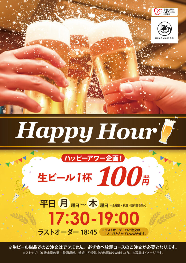 🍺食べ放題のコースをご注文の方に限ります。(ハッピーアワー単品でのご注文はお受けできませんのでご了承ください)